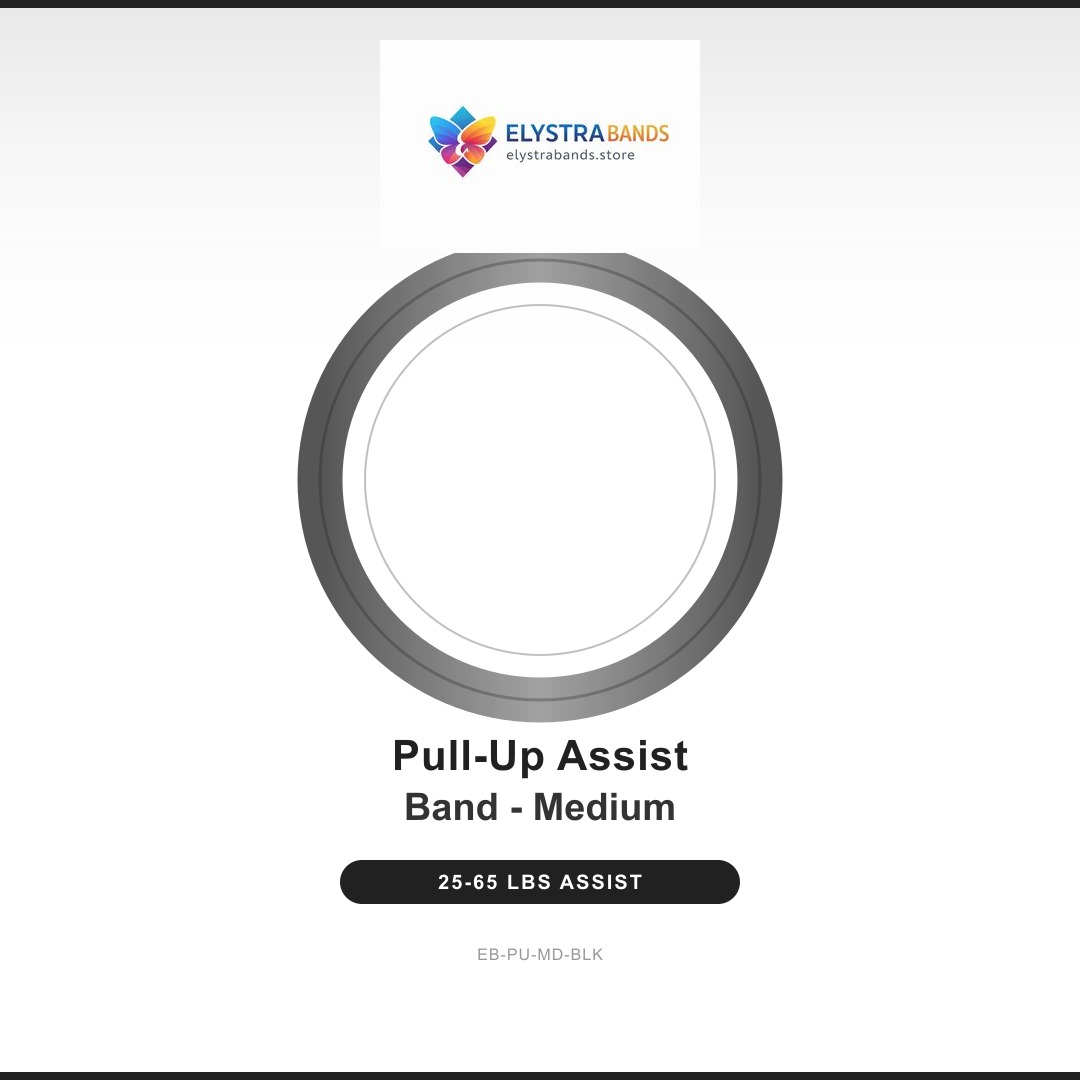 Medium pull-up assist band providing 25–65 lbs of support. Ideal for intermediate athletes working toward unassisted pull-ups, or for adding resistance to squats, deadlifts, and bench press.
